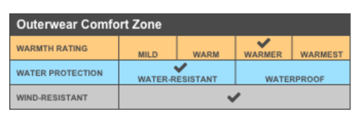 - 100% polyester woven shell bonded to a water-resistant film insert and a 100% polyester microfleece lining